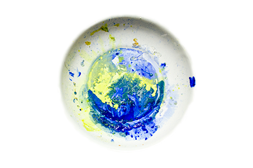 Durante la ejecución de un mural se fotografió periódicamente la paleta de peltre sobre la que se preparaban la pintura, cada fase y cada capa del mural requería distintas tonalidades de color, lo que nutre las diferencias de color.