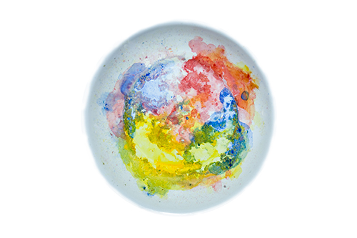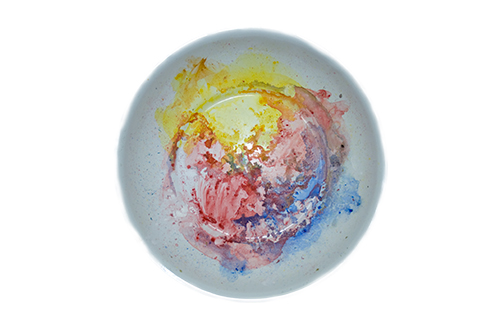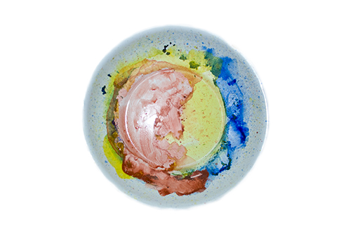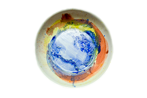 En esta pieza, se busca mostrar que al ejecutar una misma tarea, los resultados pueden y serán distintos. Muchas cosas nos afectan, el tiempo cambia, las intenciones son distintas, las emociones cambian, por lo tanto los afectos difieren. Sobre la paleta podemos observar los vestigios de colores, que cada tarea del mural fue dejando sobre este soporte.
